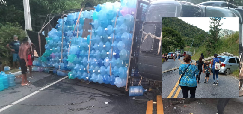 De acordo com a Rota 116, um caminhão com galões vazios de água tombou nesta sexta-feira, no Km 5, no início da RJ 116 (principal acesso à Nova Friburgo), em Itaboraí.