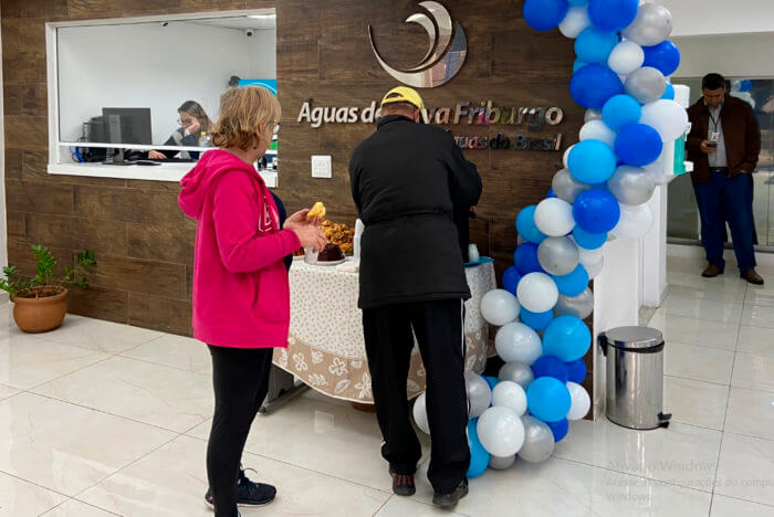 Para celebrar o Dia do Cliente (15 de setembro), Águas de Nova Friburgo decorou a loja de atendimento presencial com bolas coloridas e recebeu os clientes com um delicioso café da manhã. Além disso, os clientes receberam como presente um cartão e um copo ecológico.