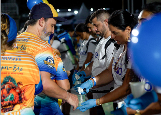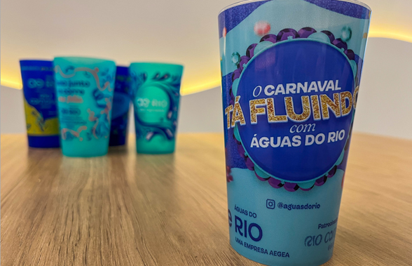 A Águas do Rio marca presença mais uma vez no Carnaval da Marquês de Sapucaí com a distribuição gratuita de 195 mil ecocopos (copos reutilizáveis).