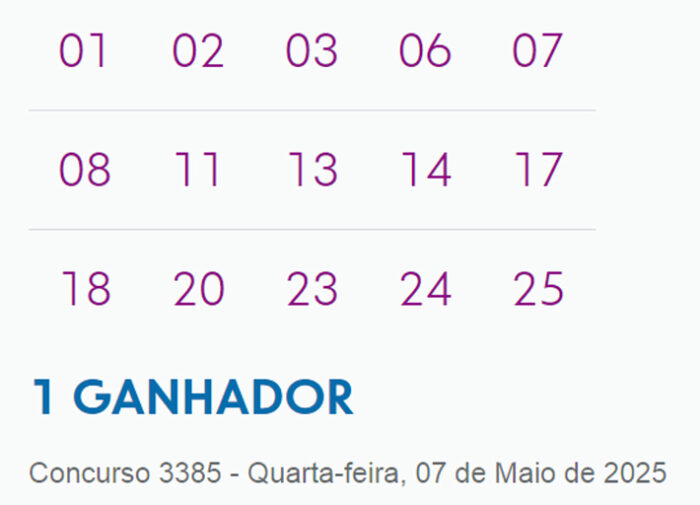 A aposta foi feita pelos canais eletrônicos da Caixa Econômica. Uma aposta de Brasília acertou as 15 dezenas e faturou o prêmio principal de R$ 1,6 milhão na Lotofácil desta quarta, 7/5.