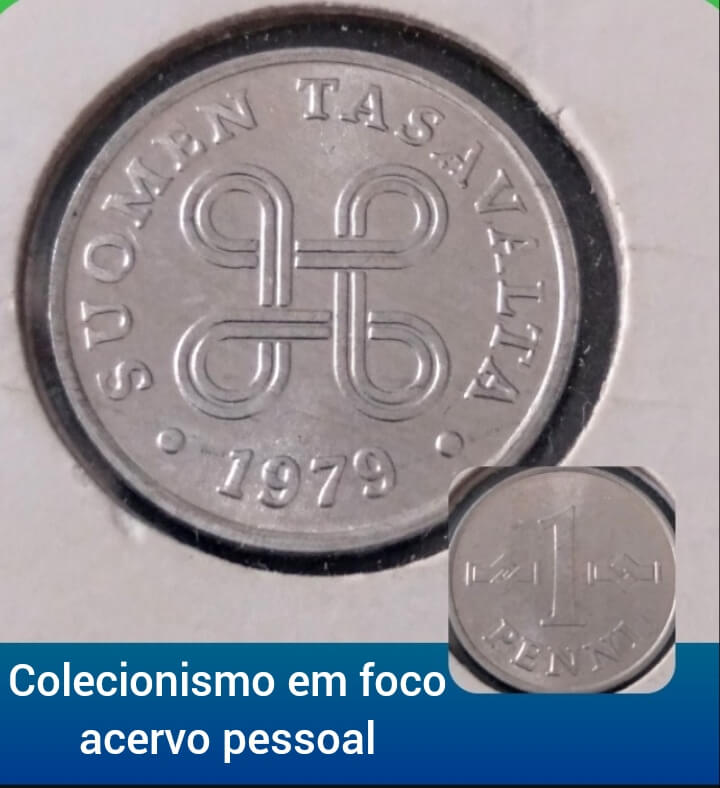 A coluna da semana traz essa linda moeda da Finlândia de 1 Penni, ano de 1979 em alumínio. Bordo Liso, formato redonda, peso 0.45 gramas, diâmetro 15.72 mm, espessura 1 mm. Ela foi cunhada na Casa da Moeda de Helsinque. A moeda da Finlândia já foi o Marco Finlandês, mas no ano de 2002, o Euro o substituiu.