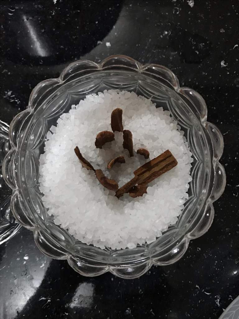 Um copo de sal grosso e uns paus (cascas) de canela, limpam as energias da casa e atraem dinheiro.