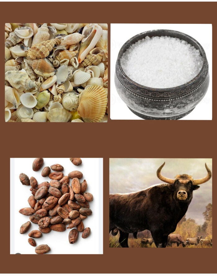 Gado – Em muitas sociedades antigas, riqueza significava possuir animais. Vacas, cabras e ovelhas funcionavam como uma espécie de reserva de valor, podendo ser trocadas por outros bens.