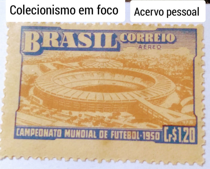 A coluna da semana traz para os leitores outra maravilhosa lembrança filatélica. Selo comemorativo do Campeonato Mundial de Futebol de 1950 lançado pelo Correio brasileiro em 24.06.1950. O recém inaugurado estádio do Maracanã, palco da partida inicial e final da Copa do Mundo.