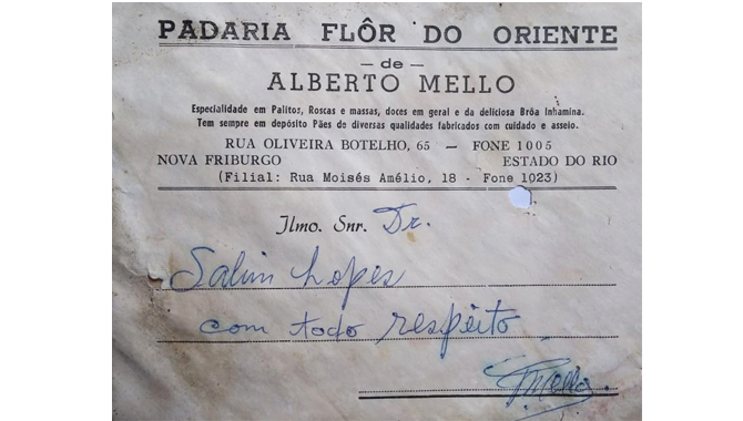 É assim, sempre com muito carinho, que me recordo da “Padaria Flor do Oriente” – a popular “Padaria do Mello ou do Mellinho” – a padaria da minha meninice que, na Rua Oliveira Botelho (antiga Três de Outubro) nº 65, permaneceu da mesma forma, por quase setenta anos, desde que foi fundada, em 1931.