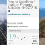 FRIO INTENSO FOI REGISTRADO, POR VOLTA DAS 17H, PELA ESTAÇÃO METEOROLÓGICA DO INSTITUTO FRIBURGO SOLIDÁRIO – Parece frio de inverno, mas já é primavera! A estação meteorológica do Instituto Friburgo Solidário aferiu na tarde desta quarta-feira, 20/10, temperatura de apenas 1.9 graus no Caledônia, às 16h56. A sensação térmica no local foi negativa: -3.8 graus. O frio na Região Serrana do Rio é provocado por uma massa polar que chegou após a forte ventania de domingo, 19/10 (LEIA MATÉRIA AQUI).
