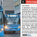 COLETIVOS DEIXAM DE USAR VIADUTO E CIRCULAM PELA ROTA ALTERNATIVA ATRAVÉS DAS RUAS MOISÉS AMÉLIO E MAC NIVEN; PONTO DE DESEMBARQUE É IMPLANTADO EM FRENTE AO CADIMA SHOPPING – Em virtude do fechamento de vias públicas para obras de drenagem no Centro de Nova Friburgo (Avenida Alberto Braune), que provocam congestionamentos constantes em pontos críticos (como a rotatória do Paissandu), a concessionária Nova Faol anunciou mudanças temporárias no itinerário dos ônibus da direção sul da cidade. Os coletivos deixam de circular pelo viaduto e passam a utilizar a rota alternativa pelas ruas Mac Niven e Moisés Amélio até a Duque
