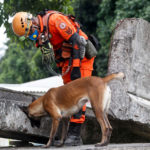 ANIMAIS SÃO PREPARADOS PARA AGIR EM EMERGÊNCIAS – O Corpo de Bombeiros Militar do Estado do Rio de Janeiro (CBMERJ) está realizando treinamento de socorro a vítimas soterradas por deslizamentos de terra. O exercício faz parte do Curso de Busca, Resgate e Salvamento com Cães do CBMERJ, que está formando um novo grupo de condutores para atuar, junto com os cães da corporação, em emergências e desastres. O curso prepara os bombeiros para agirem em buscas por pessoas desaparecidas após deslizamentos de terra e desabamentos, comuns no período de chuvas fortes. Os cães também têm papel fundamental na pronta-resposta em