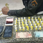 POLÍCIA APREENDE DROGAS E NOTA DE R$ 100 SUPOSTAMENTE FALSA – Policiais do BPRv prenderam dois homens suspeitos de envolvimento com o tráfico de drogas no município do Carmo, na Região Centro-Norte Fluminense. Ambos foram autuados em flagrante, porém, durante o registro do boletim de ocorrência, os dois tiveram que ser contidos pelos agentes, uma vez que discutiram e ameaçaram entrar em vias de fato. A solução foi algemar os dois acusados. A prisão dos dois suspeitos aconteceu na noite de quinta-feira, 17/11, durante abordagem a um veículo. Na ocorrência foram apreendidos 50 sacolés de cocaína e uma nota de