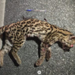 ESPÉCIE ESTÁ NA LISTA DE ANIMAIS AMEAÇADOS DE EXTINÇÃO – Um gato-maracajá (Leopardus wiedii), morreu após ter sido atropelado na RJ-116, no trecho de serra entre Nova Friburgo e Cachoeiras de Macacu. A espécie está ameaçada de extinção. O animal foi encontrado morto pela equipe da ONG SOS Vida Silvestre, que faz um trabalho de monitoramento, resgate da fauna e educação ambiental para reduzir as perdas de animais na região, através de uma parceria junto à concessionária Rota 116, que administra a rodovia. Segundo o biólogo Francis Leandro, presidente da ONG, a suspeita é de que o animal tenha atravessado