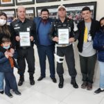 MOÇÃO DE CONGRATULAÇÕES FOI ENTREGUE PELA CÂMARA DE VEREADORES – Notícia bacana! Os policiais militares sargento Batista e o cabo Abrahão foram homenageados, na noite desta terça-feira, 28/5, pela Câmara Municipal de Nova Friburgo por gesto de bravura: em 29/5, eles socorreram uma família que estava dentro de um carro que caiu dentro do Rio Bengalas, no distrito de Conselheiro Paulino. A homenagem foi iniciativa do vereador Repórter Maicon Queiroz e aprovada por unanimidade pelos colegas. Os policiais militares – posteriormente ajudados por três populares – atuaram para salvar as vítimas do acidente – um casal e seus filhos, de