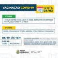 por SECOM / PMNF – A vacinação de reforço contra a covid-19 da quarta aplicação continua para os imunossuprimidos que já têm quatro meses da terceira aplicação, ou seja, que tomaram a dose até o dia 3 de novembro do ano passado. Essas pessoas podem ser vacinadas nesta quinta-feira, 3 de março. Também na quinta-feira é oferecida a segunda dose para quem está com a vacina da Astrazeneca agendada ou, por algum motivo, atrasada. Ainda será feita a imunização de reforço de toda a população acima de 18 anos, adolescentes, gestantes e puérperas que são considerados imunossuprimidos. A Prefeitura de