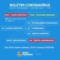MUNICÍPIO REGISTRA MAIS 117 CASOS, AGORA SÃO 22.396 NA PANDEMIA De acordo com o boletim oficial da Prefeitura de Nova Friburgo, divulgado nesta segunda-feira, 2 de agosto, o município registrou mais 4 óbitos por covid-19 em relação ao informe anterior. O número de vítimas fatais subiu para 743 na pandemia do novo coronavírus. O município acumula 22.396 casos positivos durante a pandemia. Em relação ao boletim anterior foram mais 117 casos confirmados. O número de recuperados agora é de 10.974. De acordo ainda com o boletim oficial do governo municipal, Nova Friburgo registrava nesta segunda-feira, 38 casos suspeitos aguardando resultado
