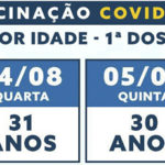 Através do calendário oficial divulgado pela Prefeitura de Nova Friburgo de vacinação (1ª dose) contra a covid-19, nesta quarta-feira, 4/8, serão vacinadas pessoas com idade de 31 anos. É necessário apresentar o CPF, RG, carteirinha do SUS, comprovante de residência. CALENDÁRIO DA SEMANAQuarta-feira, 4 de agosto: 31 anos.Quinta-feira, 5 de agosto: 30 anos. LOCAIS DE VACINAÇÃOA vacinação acontece de 9h as 15h em todas as Unidades Básicas de Saúde: Ginásio Poliesportivo Alberto da Rosa Pinheiro (Pastão), em Conselheiro Paulino, quadra da Imperatriz, em Olaria, Ginásio Poliesportivo João Antunes Nogueira (Bieca), no Cordoeira, Uerj, na Lagoinha, e nas Estratégias de Saúde