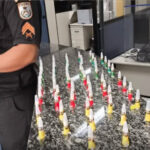 QUASE 2.700 PINOS DE COCAÍNA FORAM LOCALIZADOS NA PONTE DA SAUDADE – Mais uma grande apreensão de drogas em Nova Friburgo. Desta vez, na Estrada Prefeito Cesar Guinle, na Ponte da Saudade. Policiais militares do Setor Patamo do 11º BPM apreenderam 2.673 pinos de cocaína – distribuídos em 33 cargas – neste domingo, 24/3. A droga apreendida está avaliada em R$ 26,730. A ação da Patamo foi realizada após denúncia informando que traficantes estavam escondendo entorpecentes em uma área de mata. O material apreendido foi encaminhado à 151ª Delegacia de Polícia, onde o registro da ocorrência foi realizado. A droga