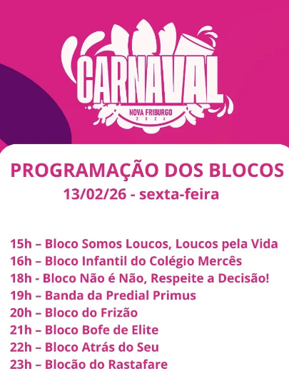 A Avenida Alberto Braune é o grande palco dos desfiles em Nova Friburgo, por onde vão desfilar vários blocos e as tradicionais escolas de samba.