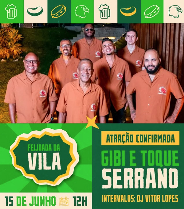 “Feijoada boa tem que ter música boa — e na Vila, isso é lei! Gibi e o grupo Toque Serrano comandam o nosso domingo, com o DJ Vitor Lopes nos intervalos pra não deixar ninguém parado”, diz a postagem da verde e branco nas redes sociais.