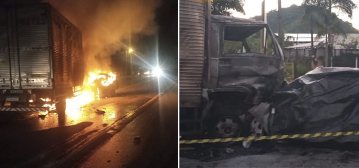 A colisão frontal entre um veículo de passeio e um caminhão baú terminou em tragédia na madrugada desta terça-feira, 1/3, na RJ-116, nas proximidades da divisa territorial entre Cachoeiras de Macacu e Itaboraí – próximo ao posto de combustíveis DX, na localidade de Agro Brasil, no Km 14.