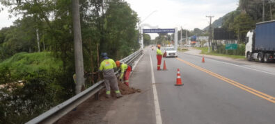 SERVIÇOS DE RECUPERAÇÃO DE PAVIMENTO, DRENAGEM E SINALIZAÇÃO ESTÃO SENDO EFETUADOS EM TRECHOS DA RODOVIA – A Concessionária Rota 116 S/A prossegue com o cronograma semanal de obras de manutenção e melhorias ao longo da RJ-116, principal ligação entre o Leste Fluminense e a Região Serrana. Os serviços contemplam ações de recuperação do pavimento, drenagem, sinalização e dispositivos de segurança, com o objetivo de garantir mais conforto e segurança aos usuários da rodovia. Entre os destaques desta semana, estão a readequação das defensas metálicas no quilômetro 39,3, em Cachoeiras de Macacu, e a restauração da sinalização rodoviária vertical e horizontal