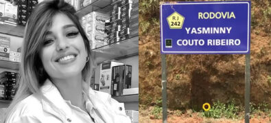 FARMACÊUTICA ERA MUITO QUERIDA EM SUMIDOURO E FOI VÍTIMA DE FEMINICÍDIO EM 2023 – A RJ-242, com aproximadamente 22 km de extensão no perímetro urbano de Sumidouro entre Soledade e Campinas, passou a ser denominado Yasminny Couto Ribeiro. A homenagem foi aprovada pela Assembleia Legislativa. Yasminny Couto Ribeiro era farmacêutica em Sumidouro e, aos 28 anos foi assassinada pelo ex-namorado, em fevereiro de 2023. O bárbaro crime teve grande repercussão. A placa que dá o nome de Yasminny Couto Ribeiro a um trecho da RJ-242 foi inaugurada segunda-feira, 26/1, em um ato de memória e homenagem. O local fica a