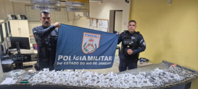AÇÃO FOI REALIZADA APÓS DENÚNCIAS ANÔNIMAS – Policiais militares do 11º BPM (Nova Friburgo) realizaram uma ação em resposta a uma denúncia de tráfico de drogas na Rua do Cemitério, em Santa Rita da Floresta, Cantagalo/RJ, na noite de terça-feira, 6/1. Quatro indivíduos foram capturados e aproximadamente R$ 47 mil em entorpecentes foram apreendidos pelos policiais. Ao chegar ao local, as equipes policiais efetuaram um cerco e conseguiram apreender uma mochila com um dos envolvidos, um adolescente de 15 anos. A mochila continha uma grande quantidade de drogas, incluindo 663 sacolés de cocaína, 298 trouxinhas de maconha e 3 pedras