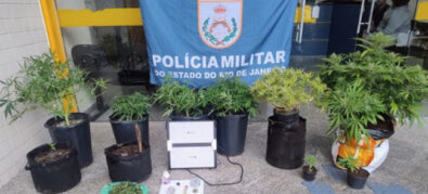 DUPLA É PRESA EM AÇÃO CONJUNTA DO 11º BPM E 151ªDP: DROGA QUE ESTAVA EMBALADA PARA VENDA TINHA INSCRIÇÃO DE FACÇÃO CRIMINOSA – Policiais civis da 151ª DP (Nova Friburgo) e policiais do 11º BPM prenderam em flagrante, neste sábado, 29/11, dois suspeitos de tráfico de drogas. A dupla foi capturada na residência onde, segundo a denúncia, funcionava uma estrutura para criação de maconha, no bairro Jardim Califórnia, no distrito de Conselheiro Paulino. Durante a abordagem, os agentes localizaram porções de maconha com o suspeito. Os policiais realizaram diligências na casa dele, onde encontraram uma estufa equipada com iluminação artificial,