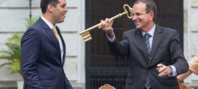 ELE FOI O CHEFE DO EXECUTIVO QUE GOVERNOU A CAPITAL DO RJ POR MAIS TEMPO: 4.827 DIAS – O prefeito do Rio, Eduardo Paes (PSD), renunciou nesta sexta-feira, 20/3, e transmitiu o cargo ao vice-prefeito Eduardo Cavaliere (PSD). A cerimônia foi realizada no Palácio da Cidade, na Zona Sul do Rio de Janeiro. Eduardo Paes foi o prefeito que governou por mais tempo o Rio de Janeiro – foram 4.827 dias, em quatro mandatos – para se candidatar ao governo do estado pela terceira vez no pleito eleitoral de outubro. Aos 31 anos, Cavaliere passa a comandar a capital fluminense