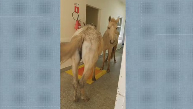 Pacientes e funcionários do Hospital Francisco Limongi, em Trajano de Moraes, na Região Serrana do Rio, levaram um susto ao se depararem com dois cavalos circulando tranquilamente pelos corredores da unidade.