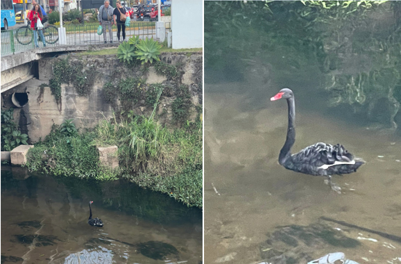 Quem passou pela Avenida Galdino do Vale Filho, esta semana, se surpreendeu com a presença de um cisne negro nadando tranquilamente nas águas do Rio Bengalas, no Centro da cidade. A ave reside no Country Clube e, pela primeira vez, foi flagrada no principal rio do município.