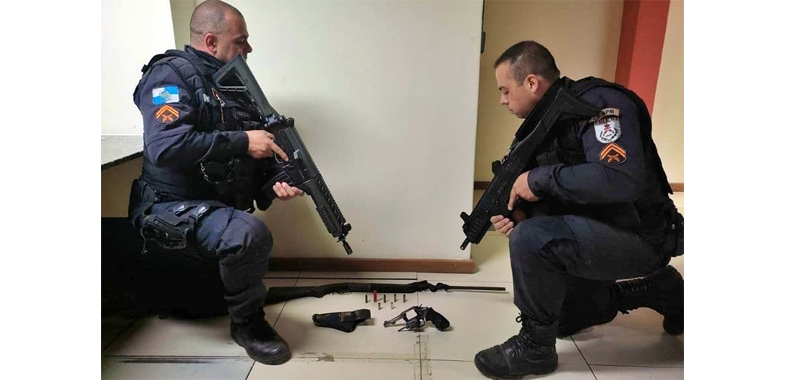 As armas utilizadas nos dois crimes, além de munições, foram apreendidas pela polícia.