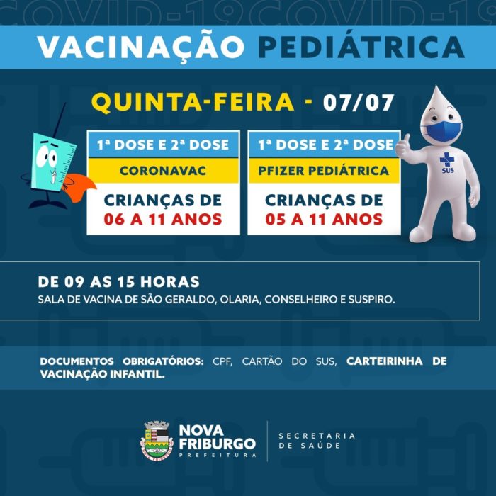 Ainda na quinta-feira, a vacinação infantil será realizada, conforme calendário.