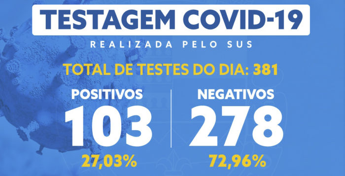 A Prefeitura informou ainda que mais 103 pessoas testaram positivo para covid na quarta-feira. No total, foram realizados 381 testes. O número leva em consideração apenas os dados dos Centros de Triagens vinculados ao SUS.