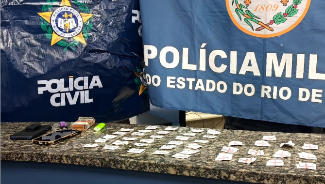 O indivíduo foi preso na companhia de um adolescente no Condomínio Terra Nova II, em Conselheiro Paulino, área de atuação da facção criminosa Comando Vermelho (CV).