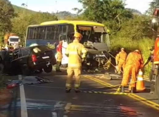 O trágico acidente aconteceu na localidade de Venâncio. O ônibus ia de Laje do Muriaé e para Itaperuna e o carro, no sentido contrário.