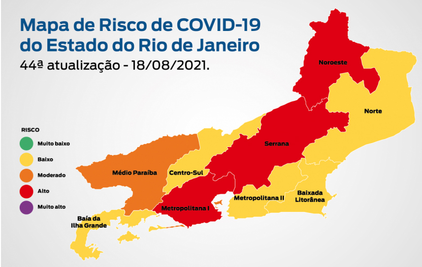 A 44ª edição do Mapa de Risco da Covid-19 divulgada, na sexta-feira, 20/8, pela Secretaria de Estado de Saúde mostra que o estado do Rio de Janeiro teve redução de 16% no número de óbitos provocados pela doença e de 6% nas internações por síndrome respiratória aguda grave (SRAG). A análise compara as semanas epidemiológicas 31 (de 01 de agosto a 07 de agosto) e 29 (18 de julho a 24 de julho) de 2021.