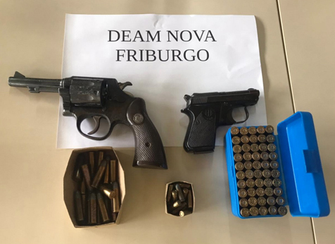 Agentes da Delegacia Especializada de Atendimento à Mulher (DEAM), coordenados pela delegada titular Mariana Thomé de Moraes, prenderam, em flagrante, um homem de 29 anos com duas armas e munições. O acusado foi capturado em sua residência, no Centro de Nova Friburgo.