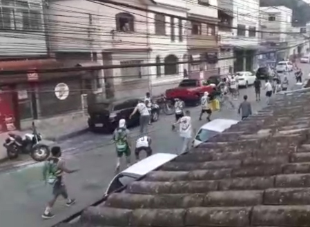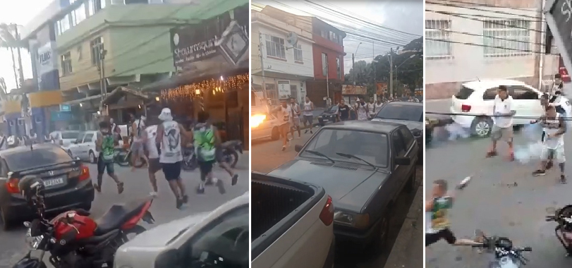 Nas imagens é possível observar o envolvimento de 30 a 40 baderneiros das duas torcidas.