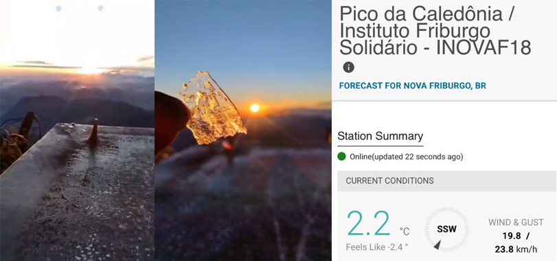 No Caledônia, o frio foi mais intenso: dois graus e sensação térmica negativa de -2.4 graus. O registro foi feito pela estação meteorológica do Instituto Friburgo Solidário.