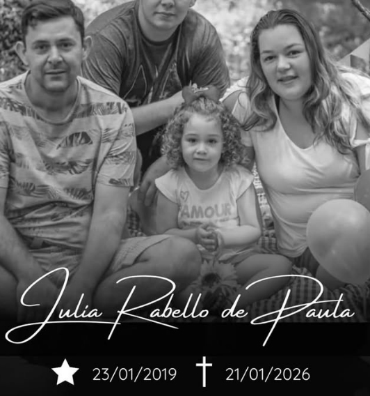 A criança (Julia Rabello de Paula) não resistiu aos ferimentos e morreu no local e a mãe foi encaminhada, em estado grave, para o Hospital Municipal Raul Sertã. O pai também deu entrada na unidade hospitalar em estado de choque.