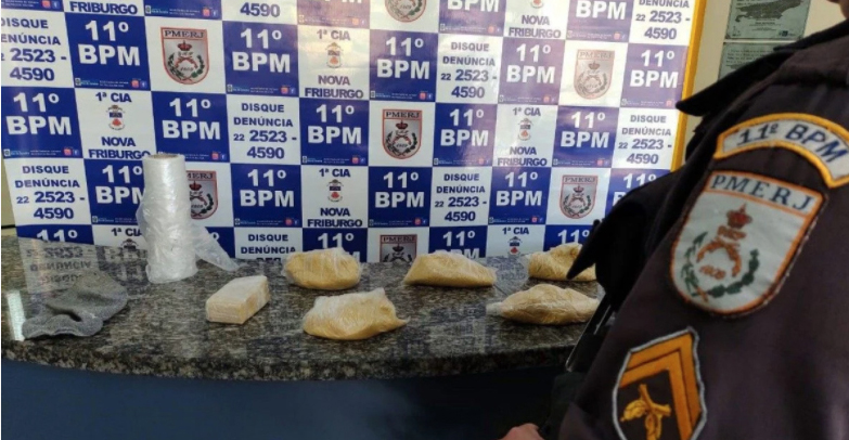 A grande quantidade de cocaína foi localizada pela equipe do Patrulhamento Tático Móvel (Patamo) na estrada que liga o bairro Cascatinha a São Lourenço, em Nova Friburgo.