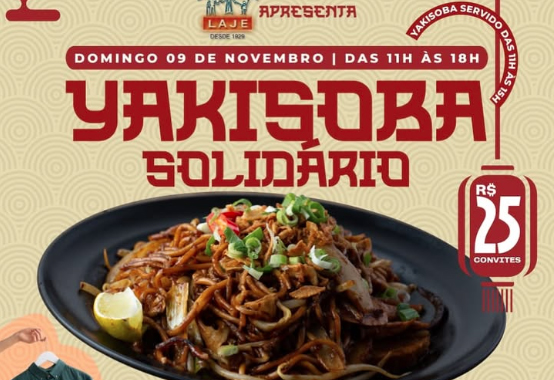 Domingo, 9 de novembro, é dia do tradicional Yakisoba Solidário do Lar Amor Abrigo a Jesus (Laje) – Rua Souza Cardoso, 403 – Lagoinha. O convite custa apenas R$ 25.