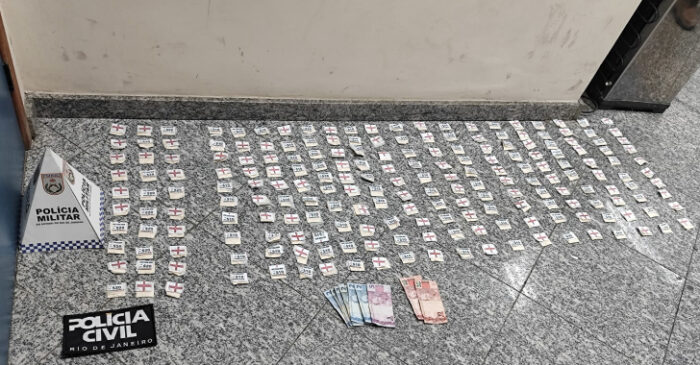 A polícia acrescentou que, com a dupla, foram apreendidas sacolas contendo grande quantidade de drogas – mais de 200 unidades, com valor unitário entre R$ 10 e R$ 20.