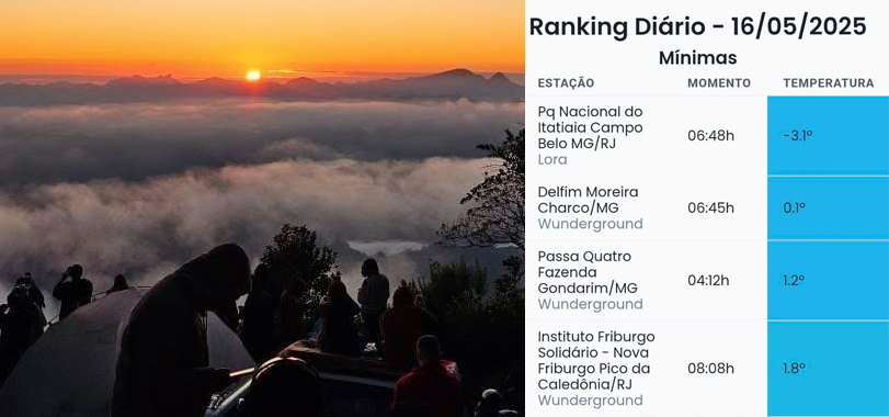 Além disso, em 16/5, foi a 4° temperatura mais baixa do Brasil na referida data.