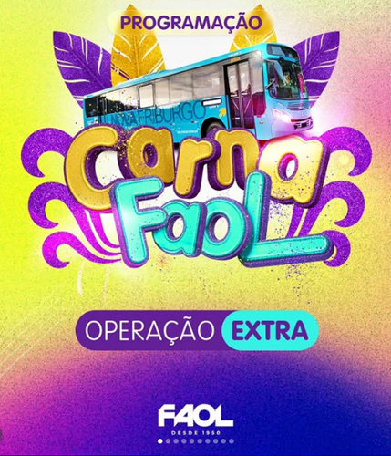 A concessionária de transporte público Faol, através de suas redes sociais, anunciou que durante o período de Carnaval implantará horários extras durante as madrugadas dos dias 13 (sexta-feira) e 17 de fevereiro (terça-feira).