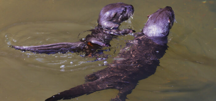Imagem fofa. O fotógrafo de natureza, Jalmirez Silva, fez mais um registro fofo, muito bacana, no Rio Bengalas, em Friburgo: a A mamãe lontra (Lontra longicaudis) ensinando o filhotão a pescar.