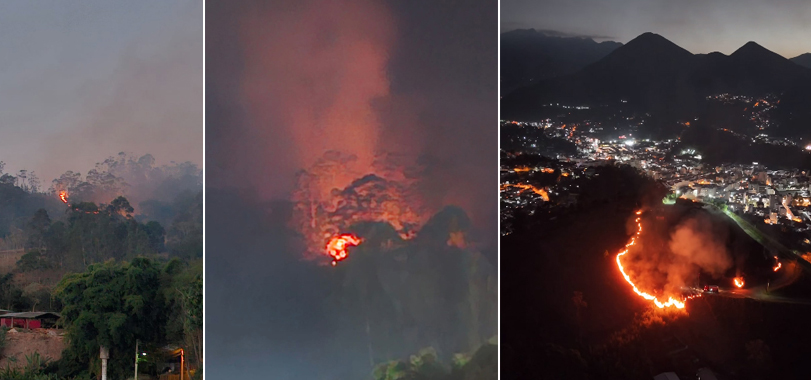 Alerta geral: na noite desta segunda-feira, 25/8, incêndios estão atingindo, pelo menos, três grandes áreas de vegetação em Nova Friburgo.