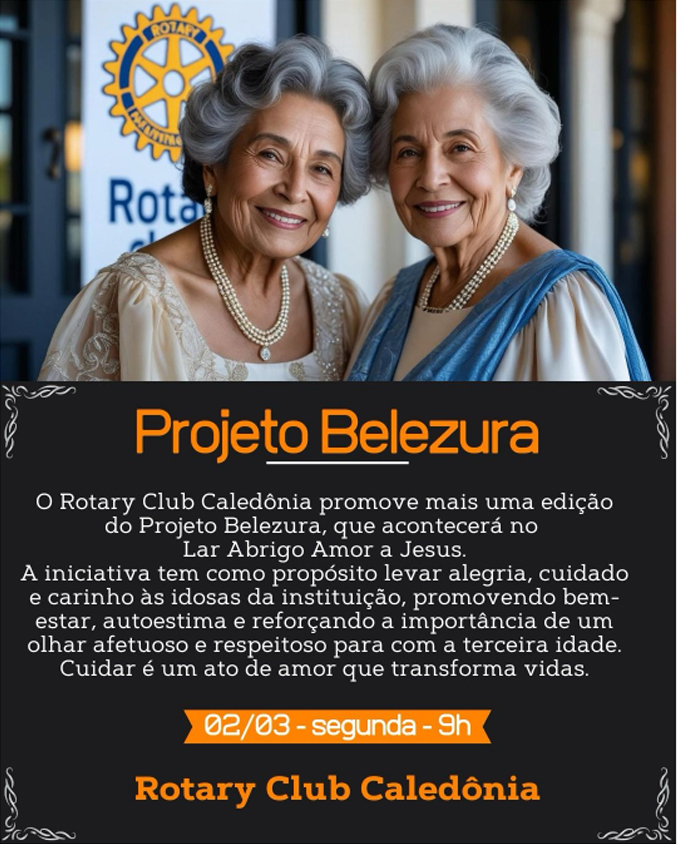O Rotary Club Caledônia promove segunda-feira, 2/3, a partir de 9h, mais uma edição do “Projeto Belezura” no Lar Amor Abrigo a Jesus (Laje), na Lagoinha.