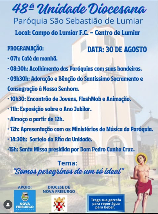A Paróquia São Sebastião de Lumiar será a sede da 48ª Unidade Diocesana, que acontece neste sábado, 30/8, no distrito turístico.