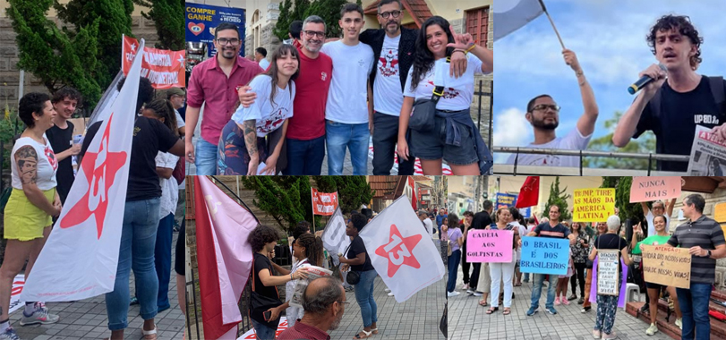 Integrantes de partidos de esquerda e de movimentos sindicais participaram, em Nova Friburgo, de ato para lembrar o 8 de janeiro.