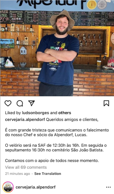 A postagem nas redes sociais foi acompanhada por manifestações de profundo pesar dos amigos ao falecimento prematuro de Lucas Thuler (leia aqui).
